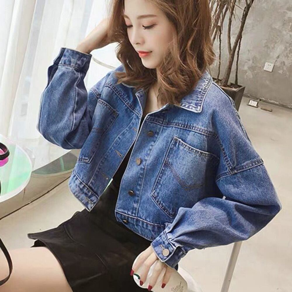 レディース カジュアル クロップド丈デニムコート 着やせGジャン 韓国風長袖 デニムブルゾン ジャンパー 上着 おしゃれ