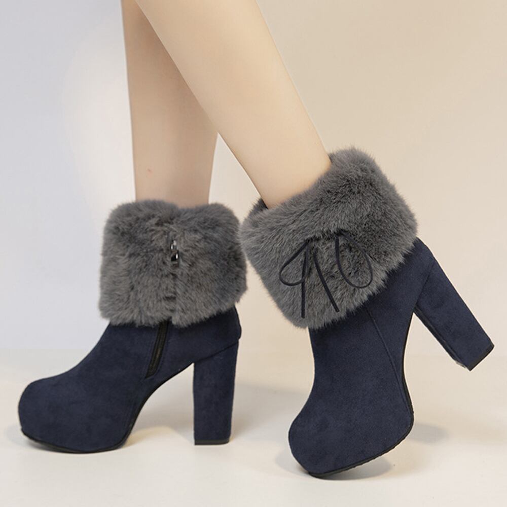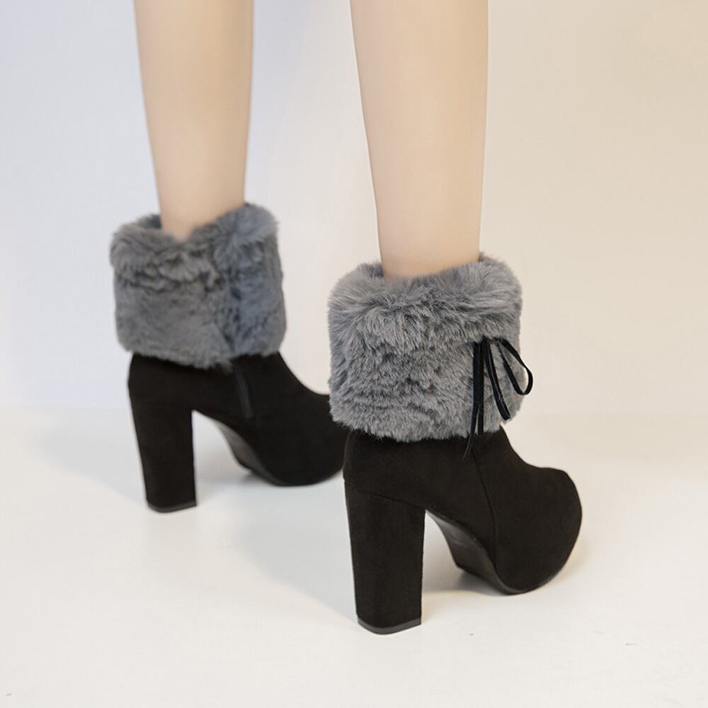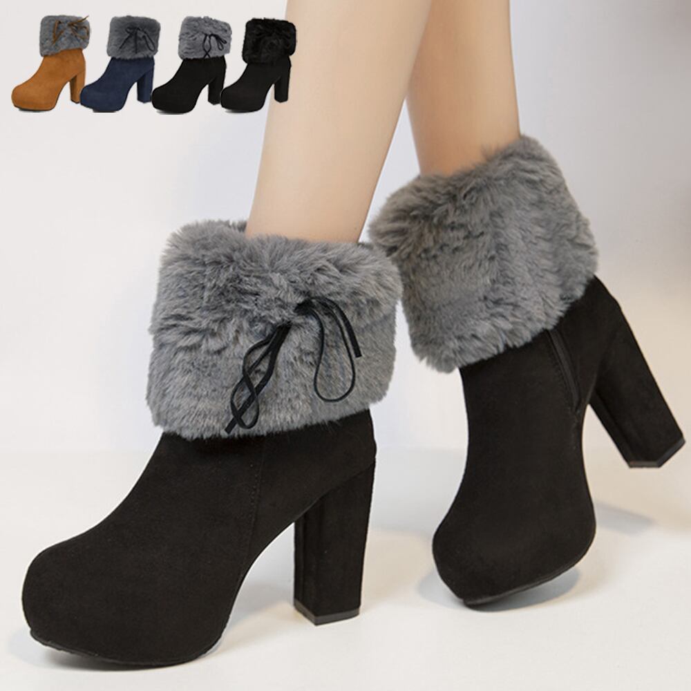 【日本倉庫即納】 ファーブーツ ブーティー 太ヒール 韓国