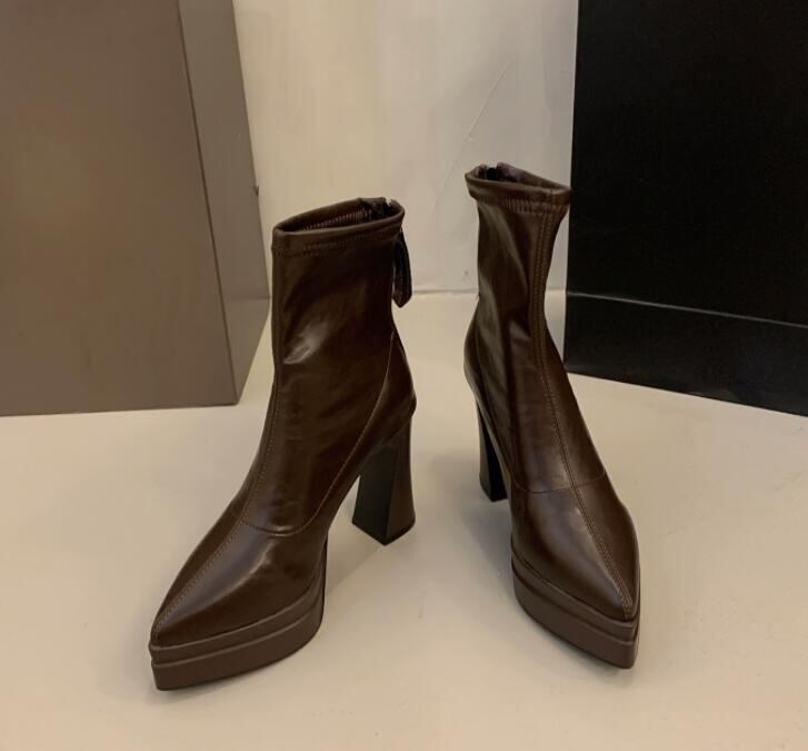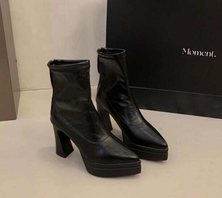 ショートブーツ シューズ ハイヒール ブーツ 尖り pu ウェッジソール