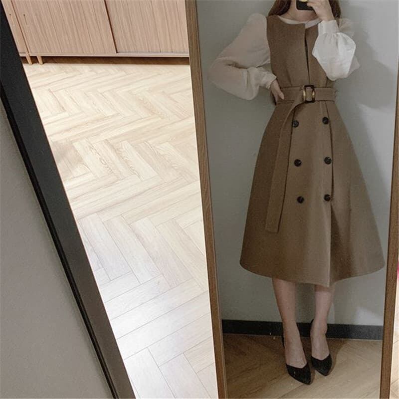 INS 秋新作 韓国風 気質 chic 韓国ファッション ロングワンピース
