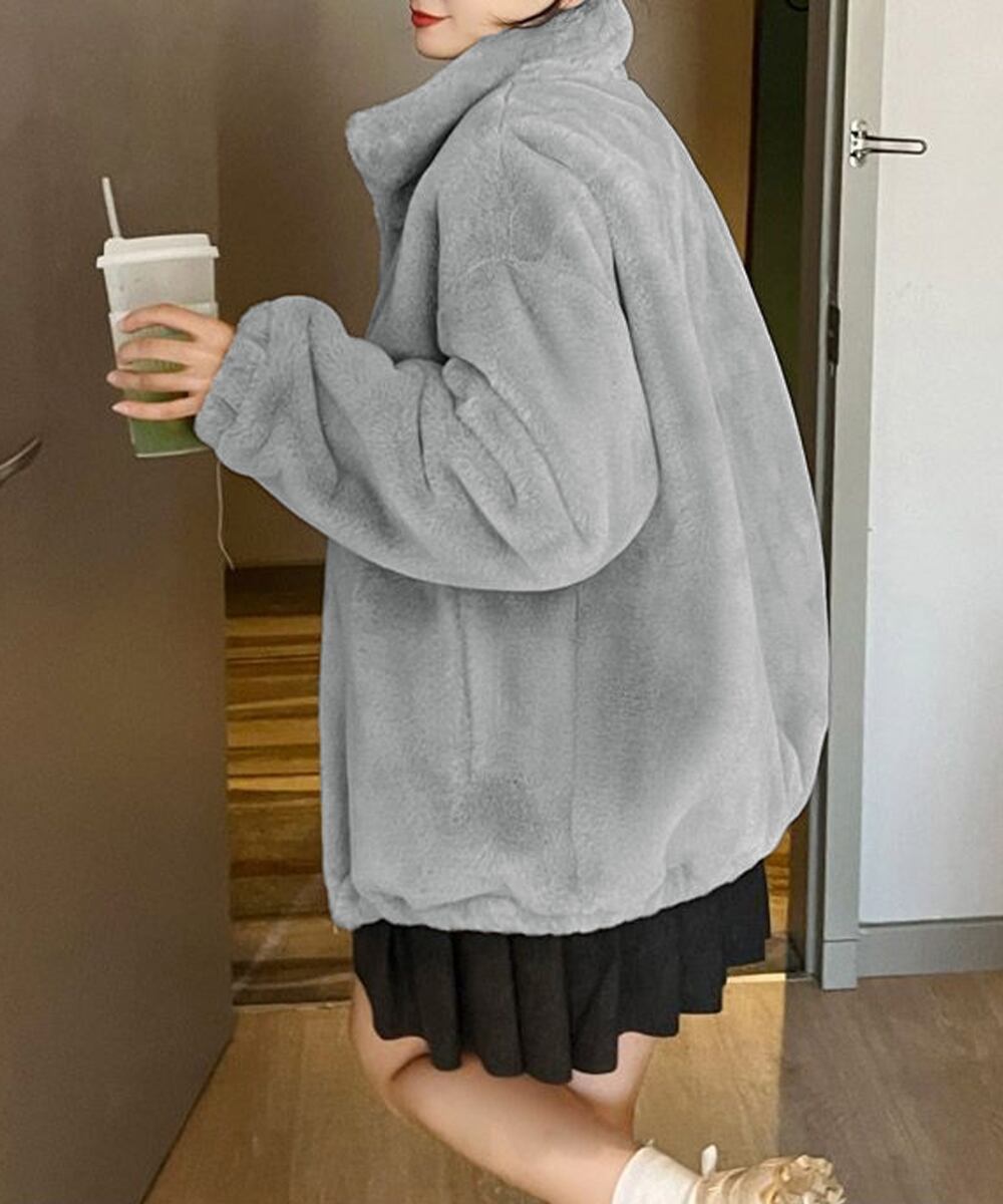 ジッパーボアブルゾン薄中綿 ふわふわボアカーディガン 暖かい モコモコフリースジャケット カジュアル ハイネックアウター