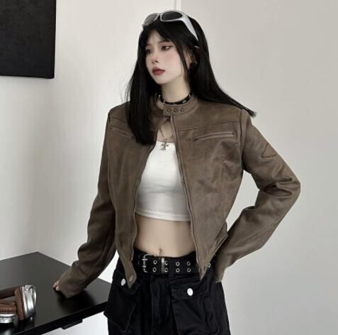 秋冬 トップス レディース ジャケット PU 革ジャン レザージャケット ショート丈