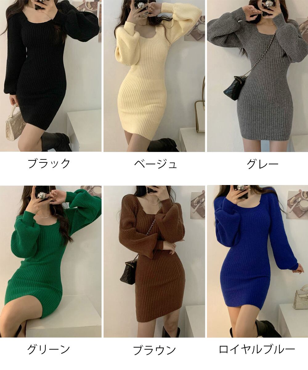 【日本倉庫即納】 リブニットワンピース レディース 韓国風