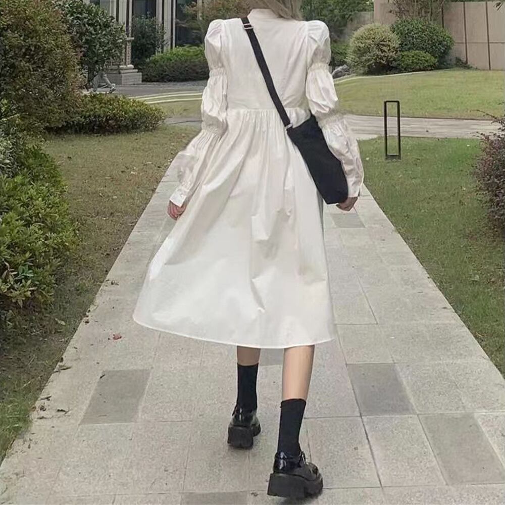 【日本倉庫即納】 白シャツワンピース長袖 韓国ファッション