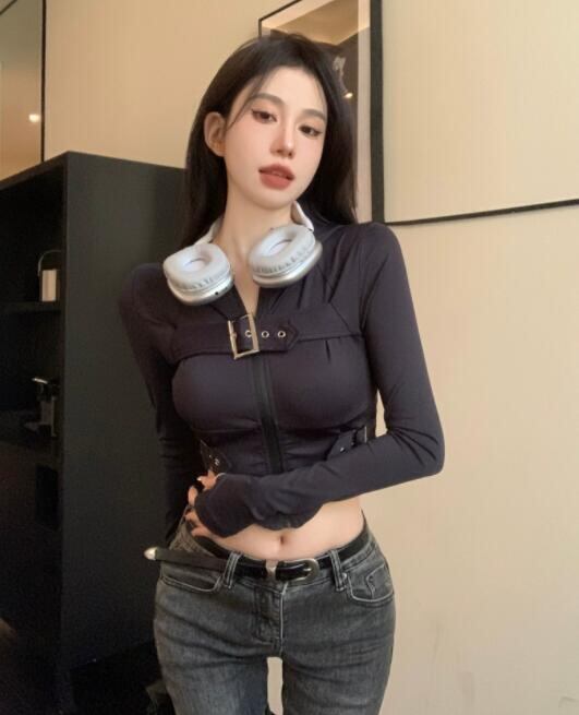 トップス Tシャツ 長袖 ショート スリム レディース