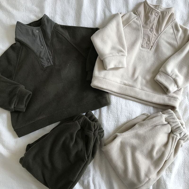 姉妹兄弟コーデ 秋冬 ユニセックス 韓国風子供服 プルオーバー+ズボン ボア 上下セット 80-150
