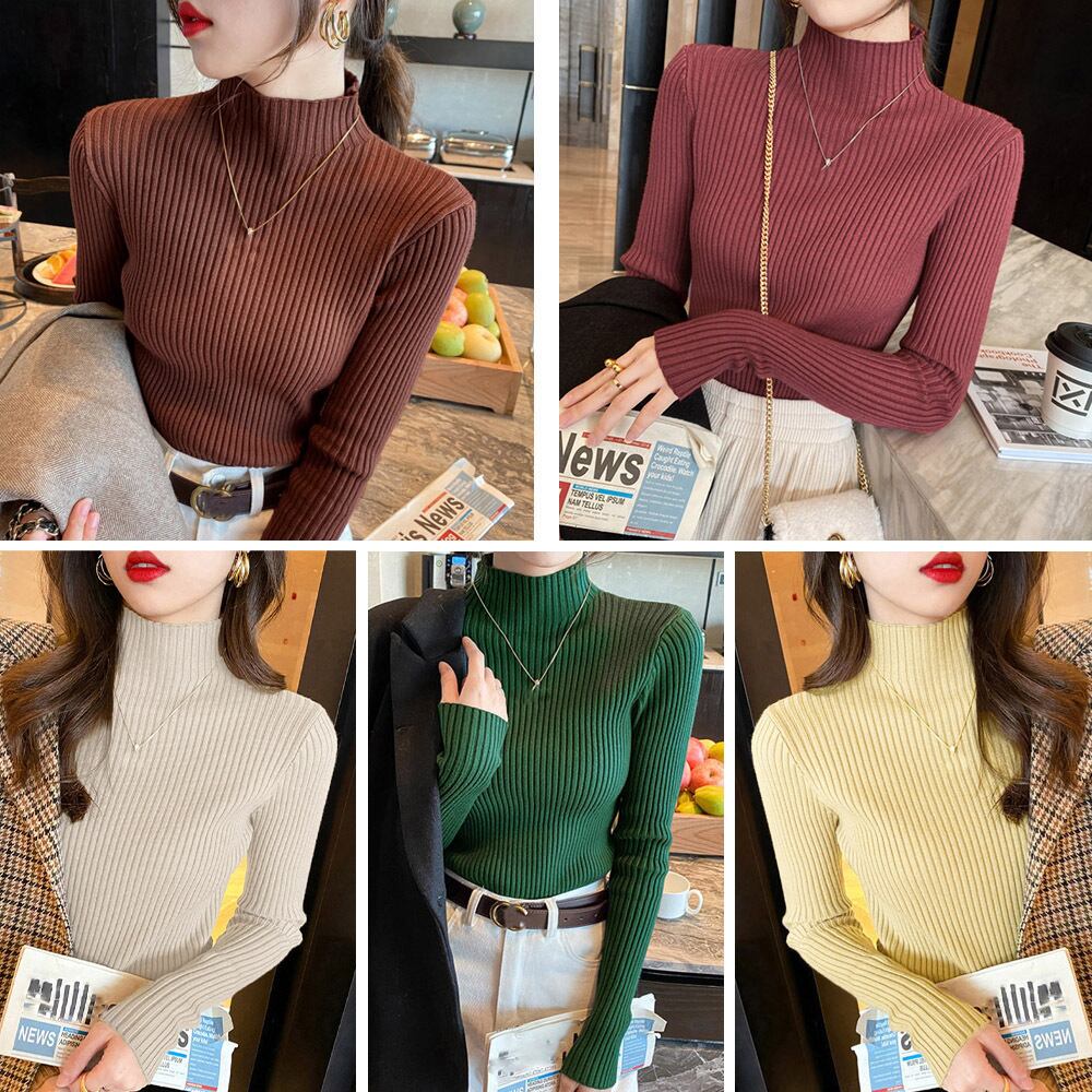 プチハイネック ニットプルオーバー きれいめ 重ね着 ニットウェア 秋冬新作ニットソー ファネルネック ベーシックニット