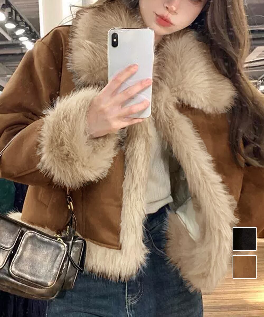 ファー襟ジャケット/防寒厚手アウター女/スエードジャンパー