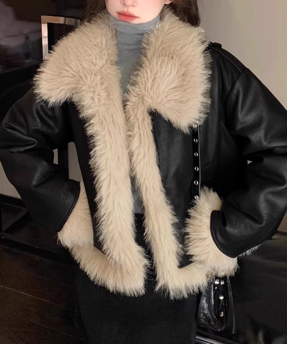 【日本倉庫即納】 ショートフェイクムートンジャケット韓国風