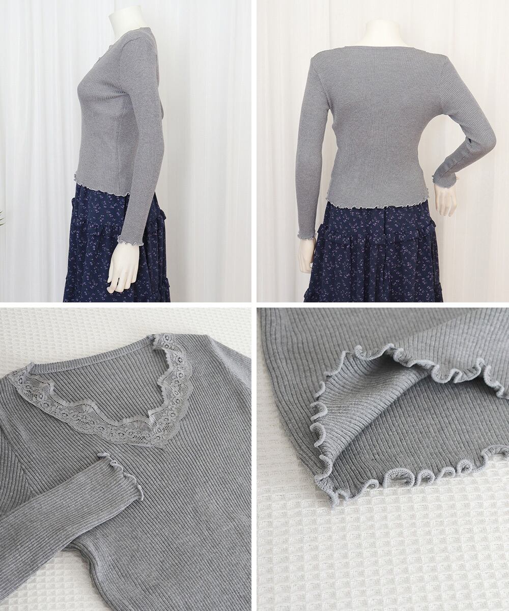 【日本倉庫即納】 ニットトップス レディース レース付き