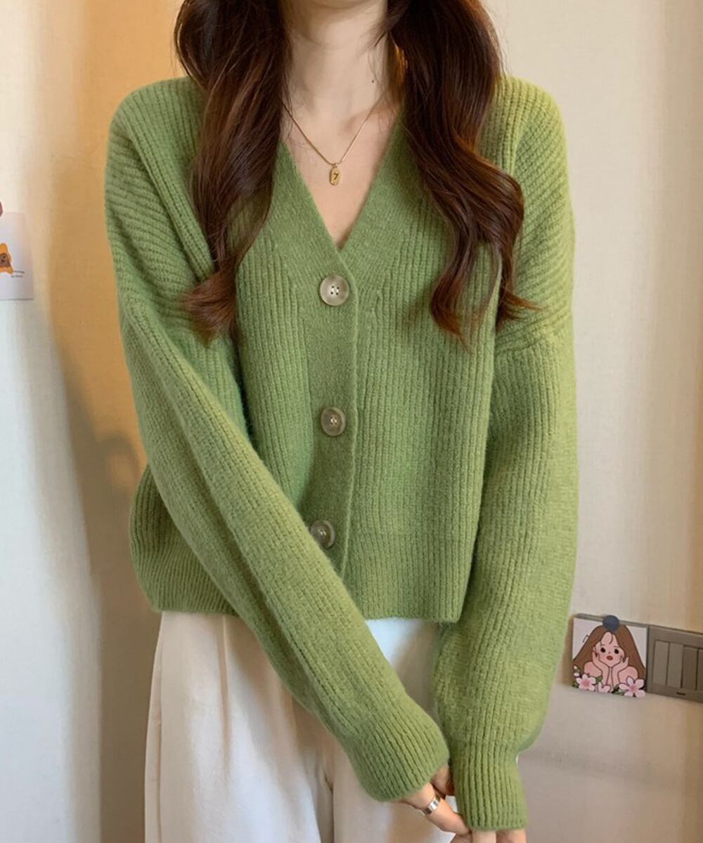 【日本倉庫即納】 ニットカーディガン Vネック 長袖秋冬服