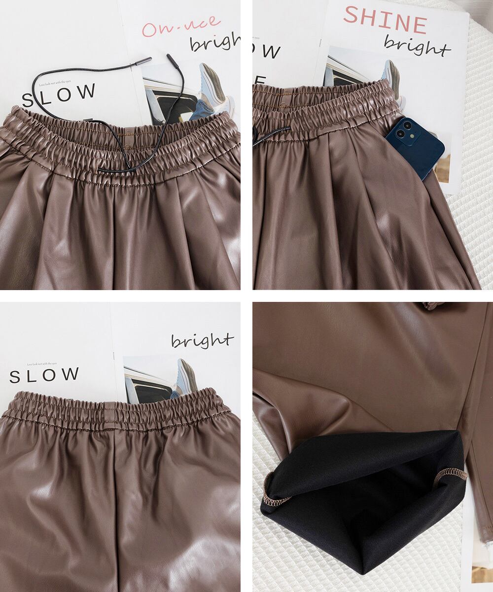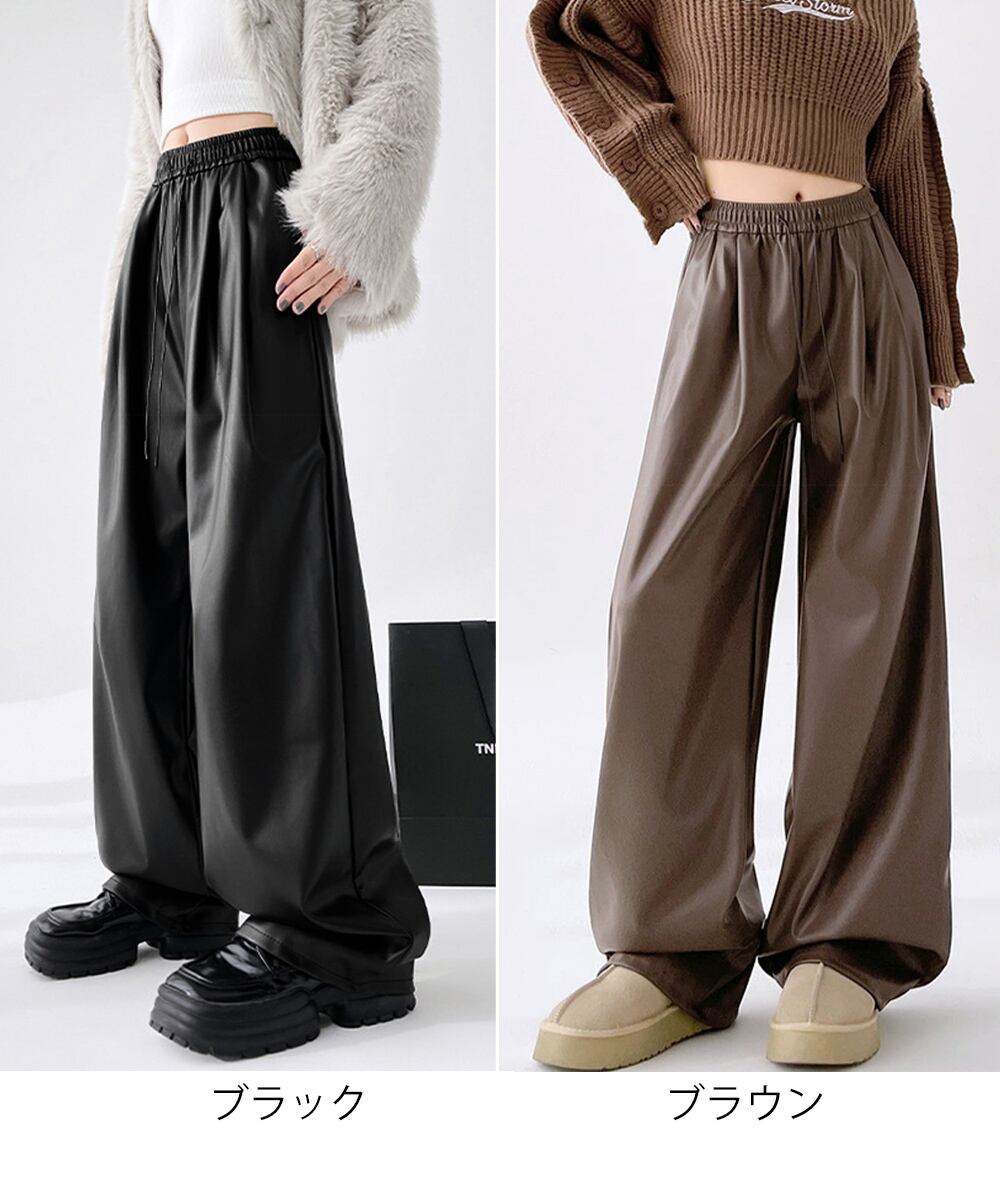 【日本倉庫即納】 フェイクレザーワイドパンツ ハイウエスト