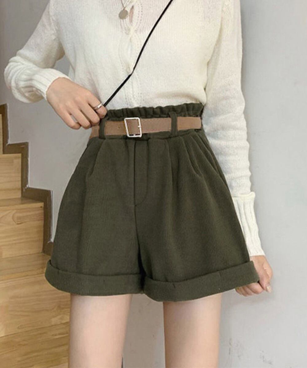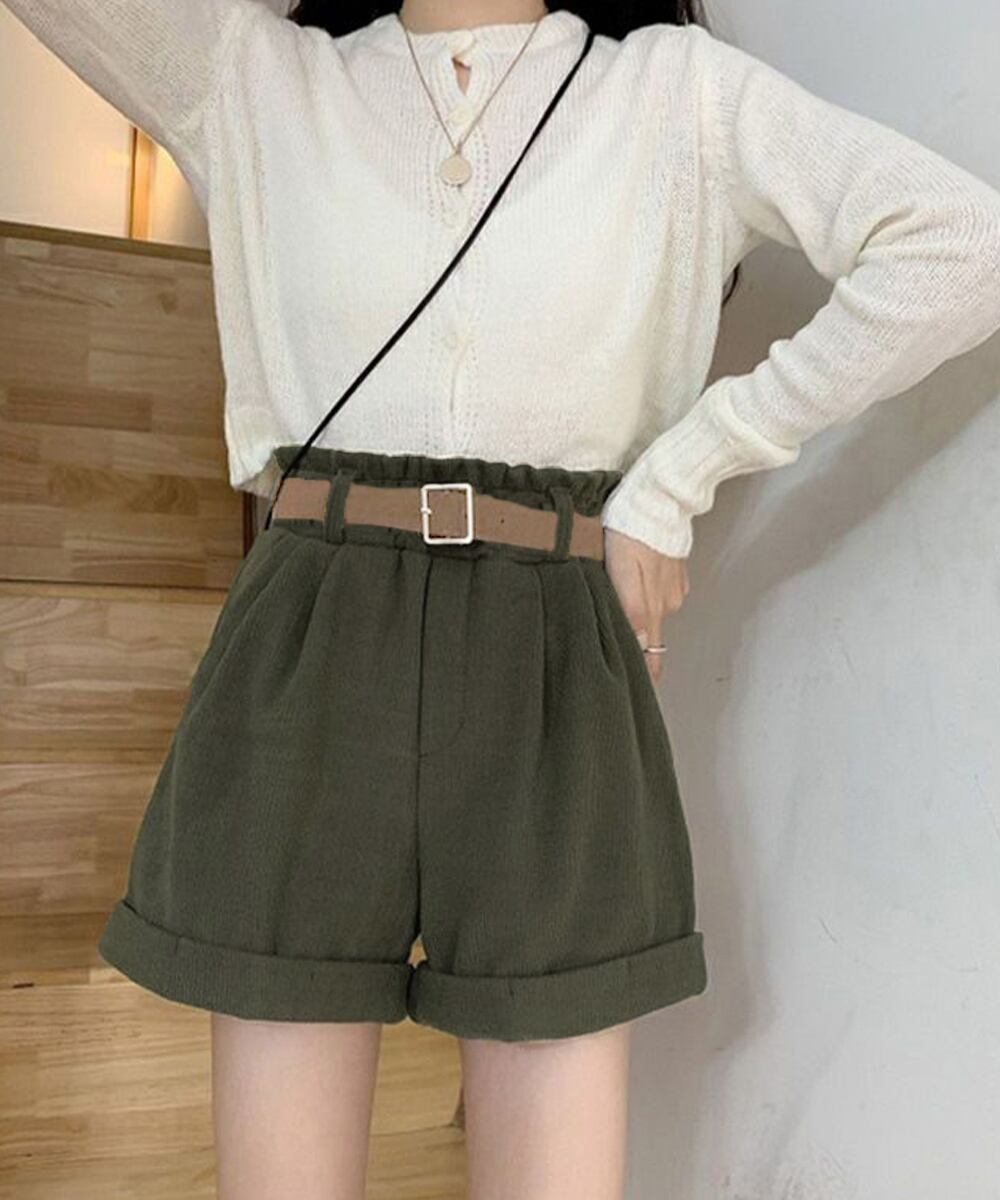 【日本倉庫即納】 ベルト付き ショートパンツ コーデュロイ