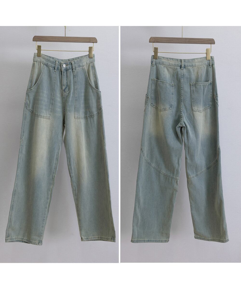 ウォッシュデニムワイドパンツ 着やせ おしゃれ ヴィンテージルーズジーパン カジュアルバギージーンズ ヒップホップパンツ