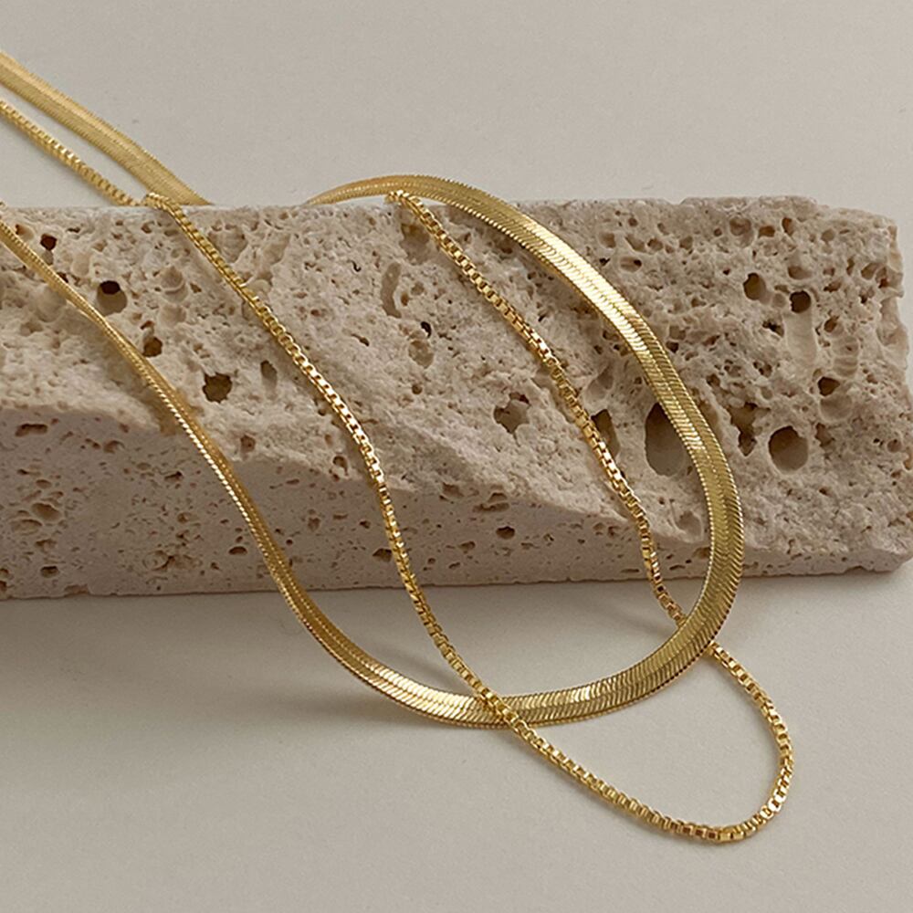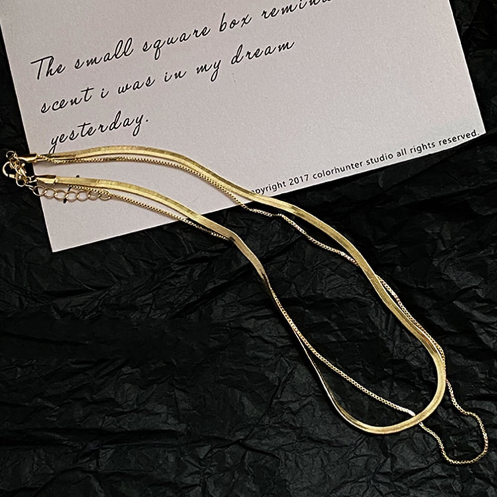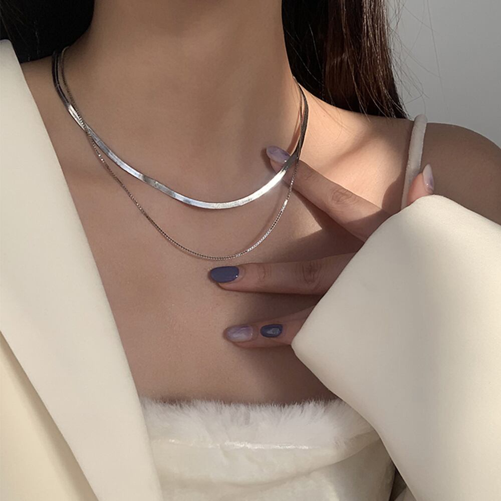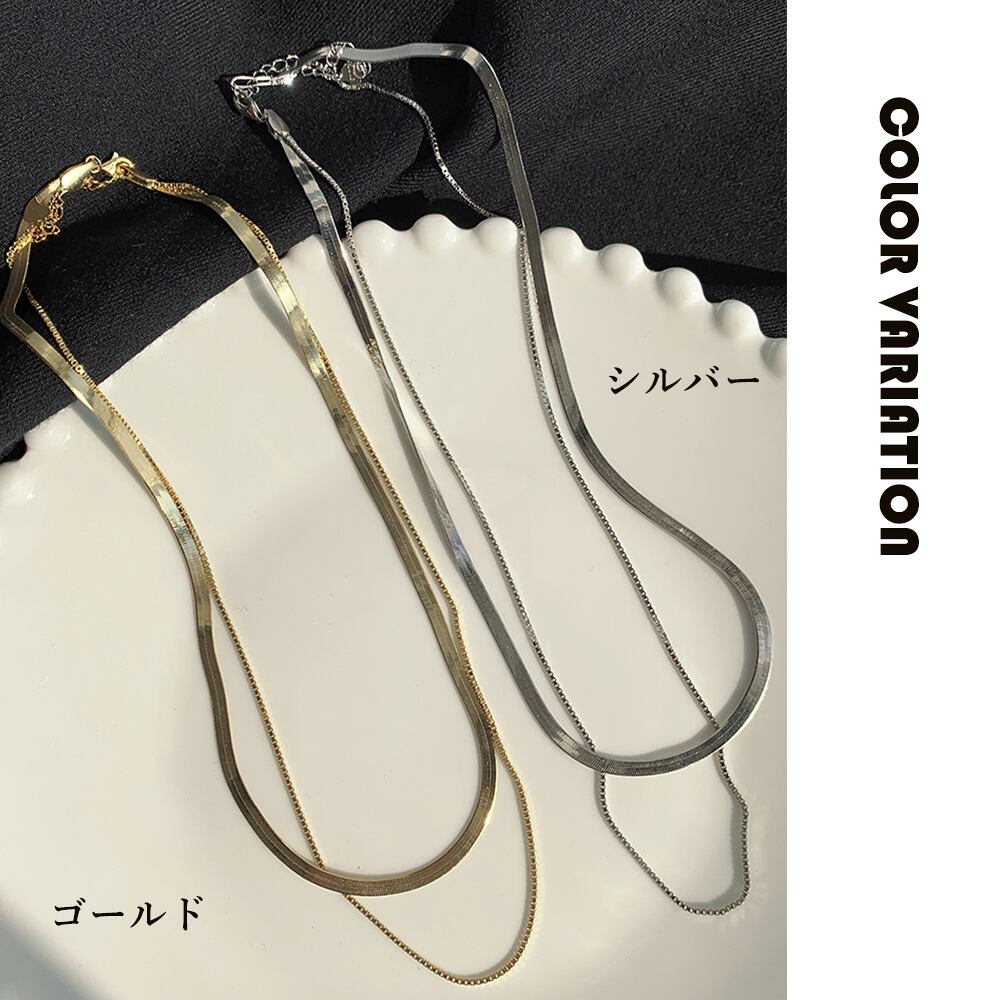 【日本倉庫即納】 太幅チョーカー 2連チェーンネックレス