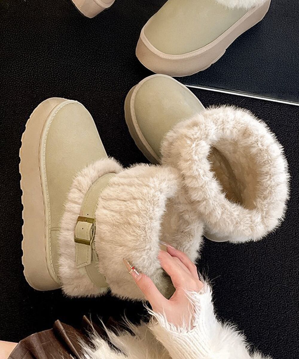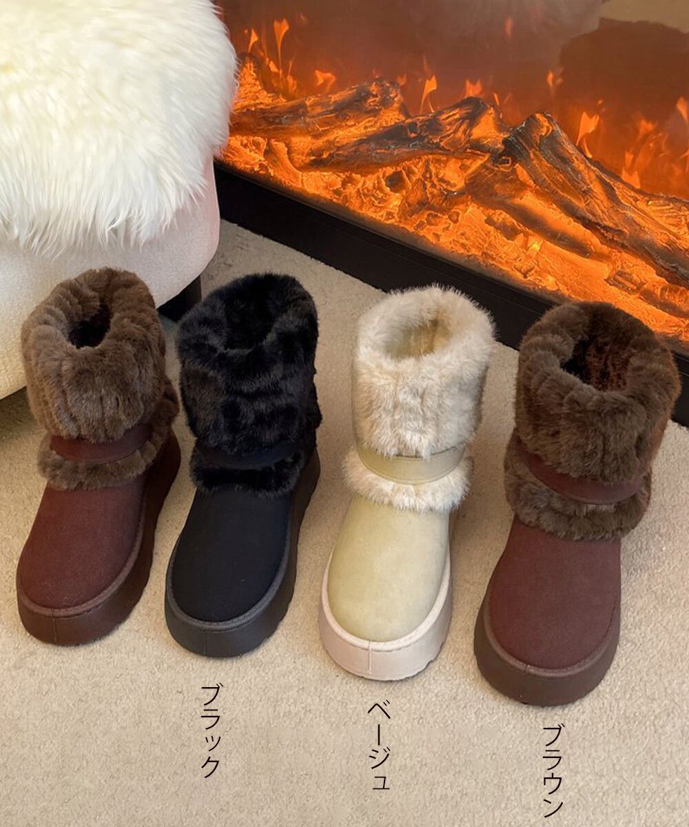 レディース ファー付き厚底ショートブーツ 暖かい 歩きやすいふわふわボアブーツ 履きやすい フラットシューズ冬 疲れない