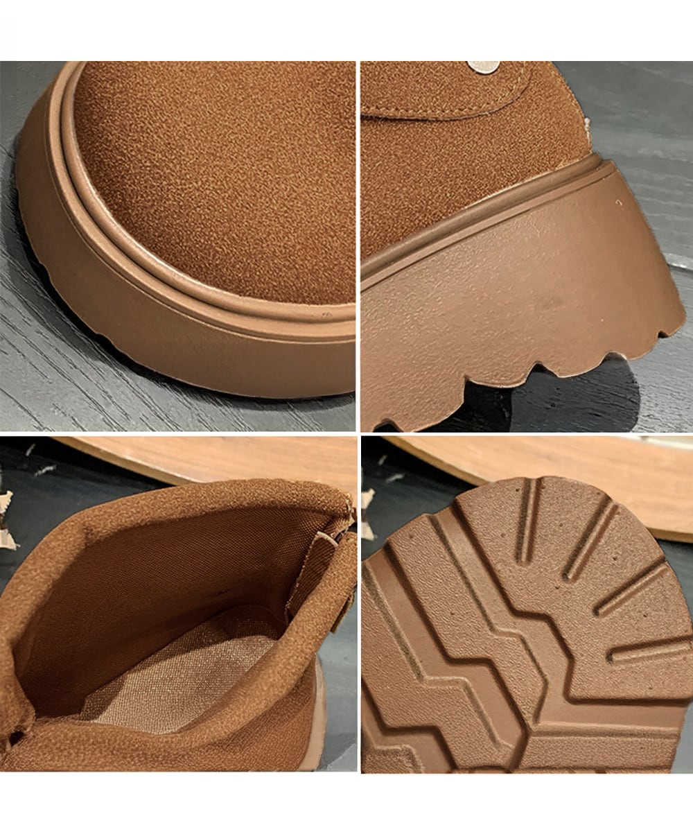 スエード調ブーツレディース ボリュームソール 厚底ブーツ 歩きやすい冬靴 カジュアル バッグファスナーブーツ 履きやすい