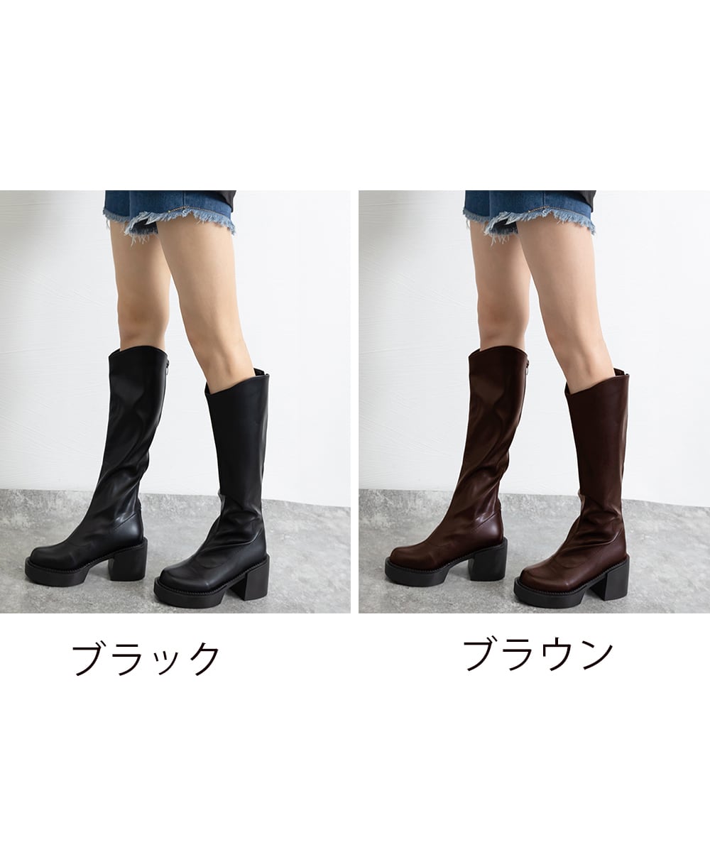【日本倉庫即納】 ロングブーツ 厚底 ジョッキーブーツ韓国
