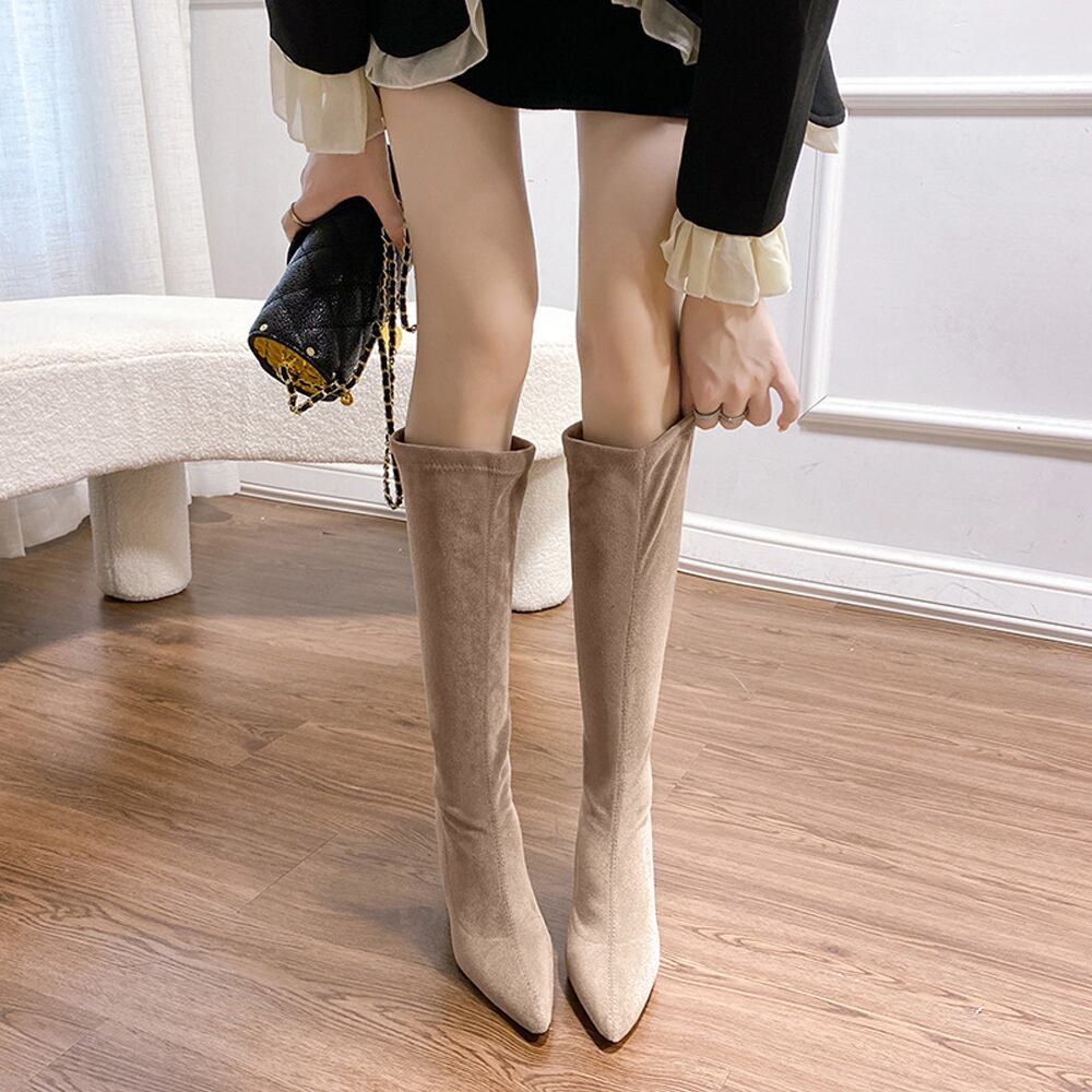 すっきりとしたシルエットが上品な足元を演出してくれるスエード調ロングブーツ