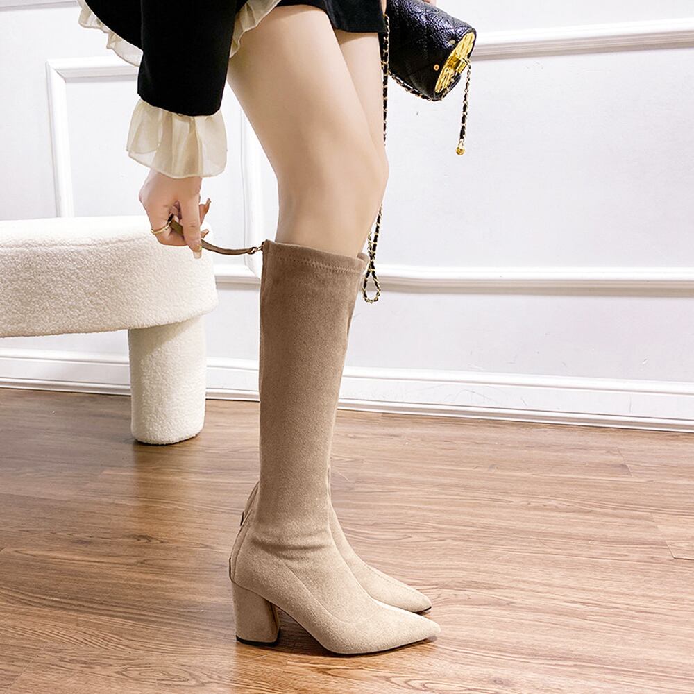 バックジップブーツ チャンキーヒール 膝下 歩きやすい シューズ 秋冬 カジュアル きれい 上品 人気 美脚脚長ブーツ