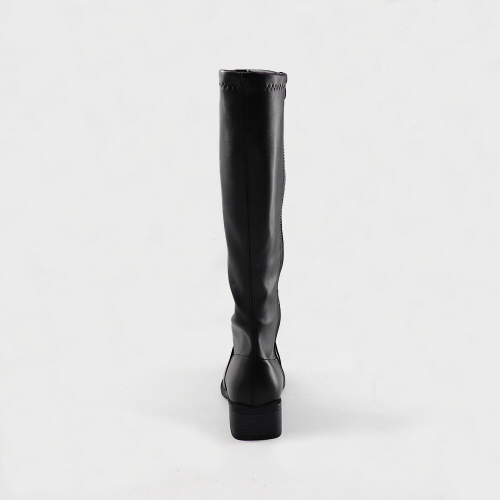 【日本倉庫即納】 ニーハイブーツ レディース ロング丈 スクエアトゥ ローヒール 合皮 レザー調