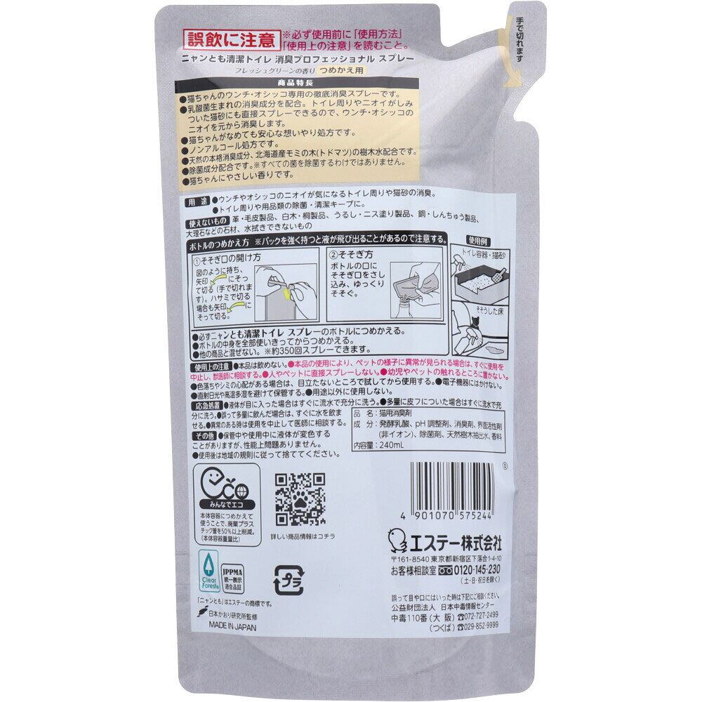 ニャンとも清潔トイレ 消臭プロフェッショナル スプレー フレッシュグリーンの香り 詰替用 240mL