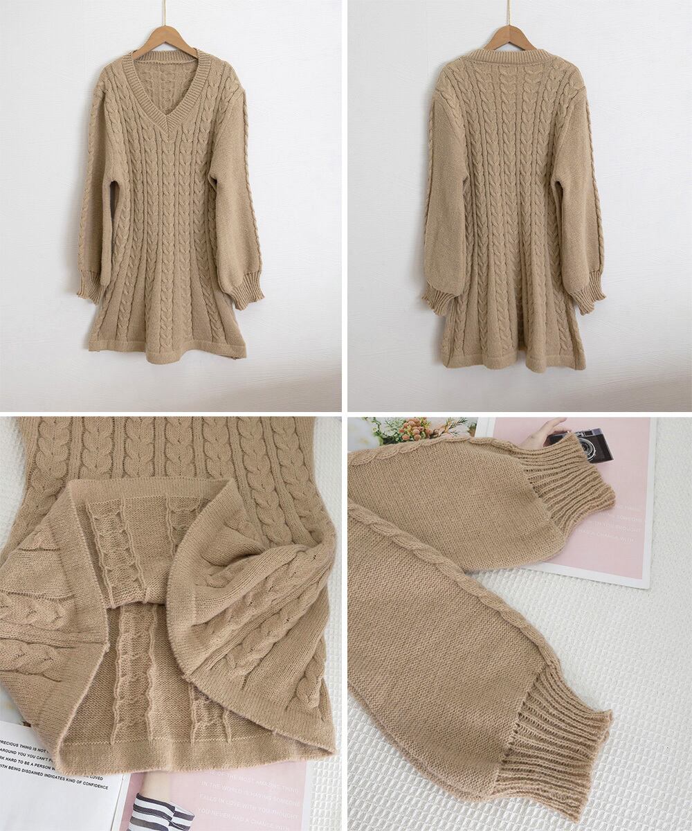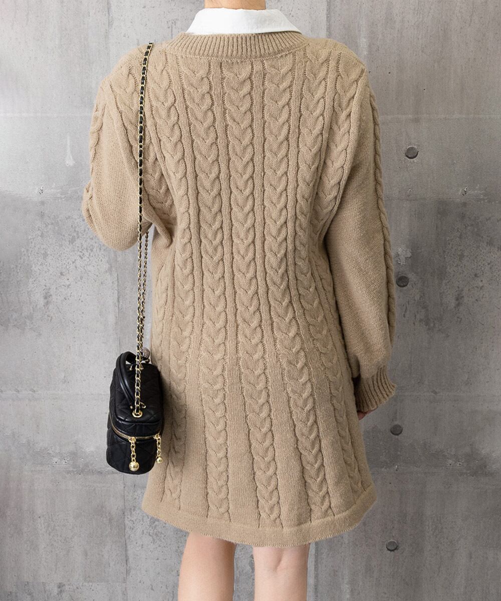 立体感のあるケーブル編みが可愛いAラインシルエットのニットミニワンピース。