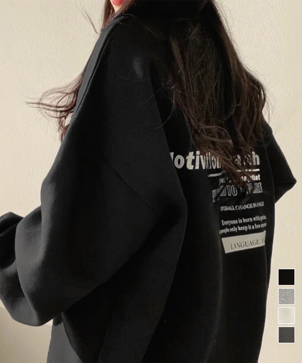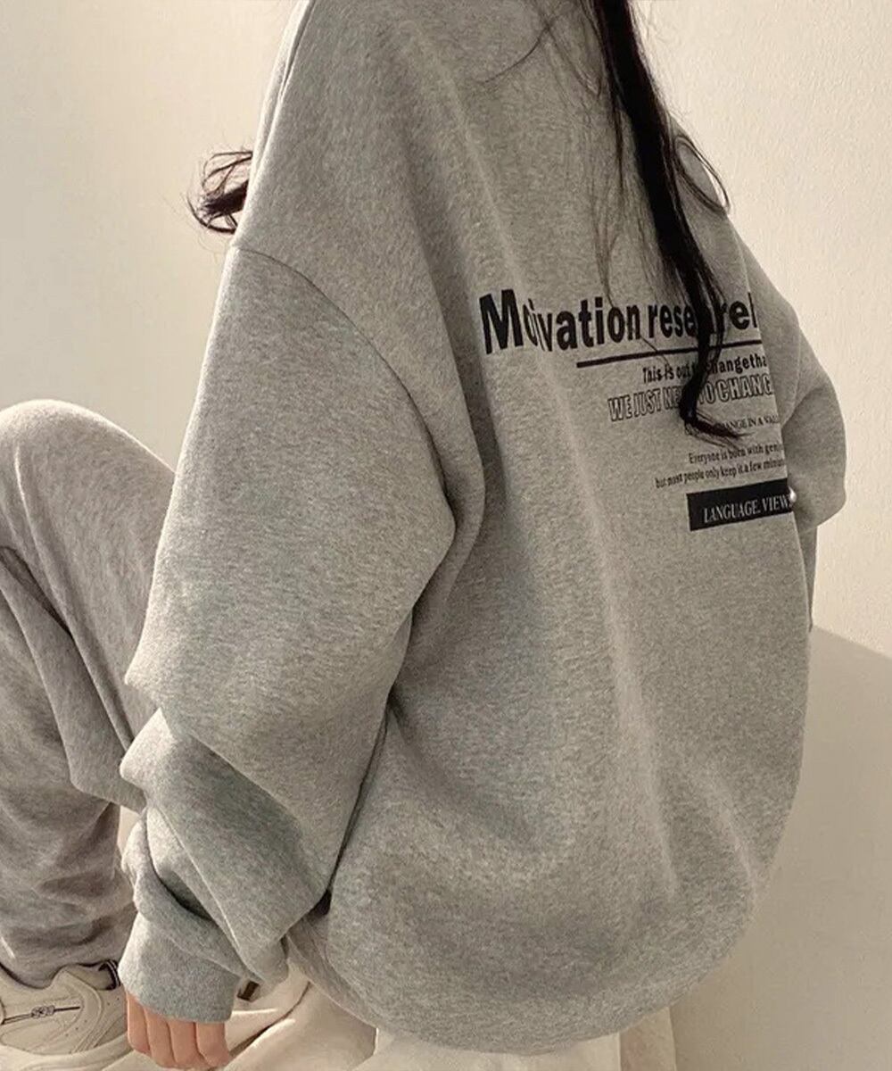 フロントとバックに英字ロゴをあしらった、クールな存在感のスウェット。