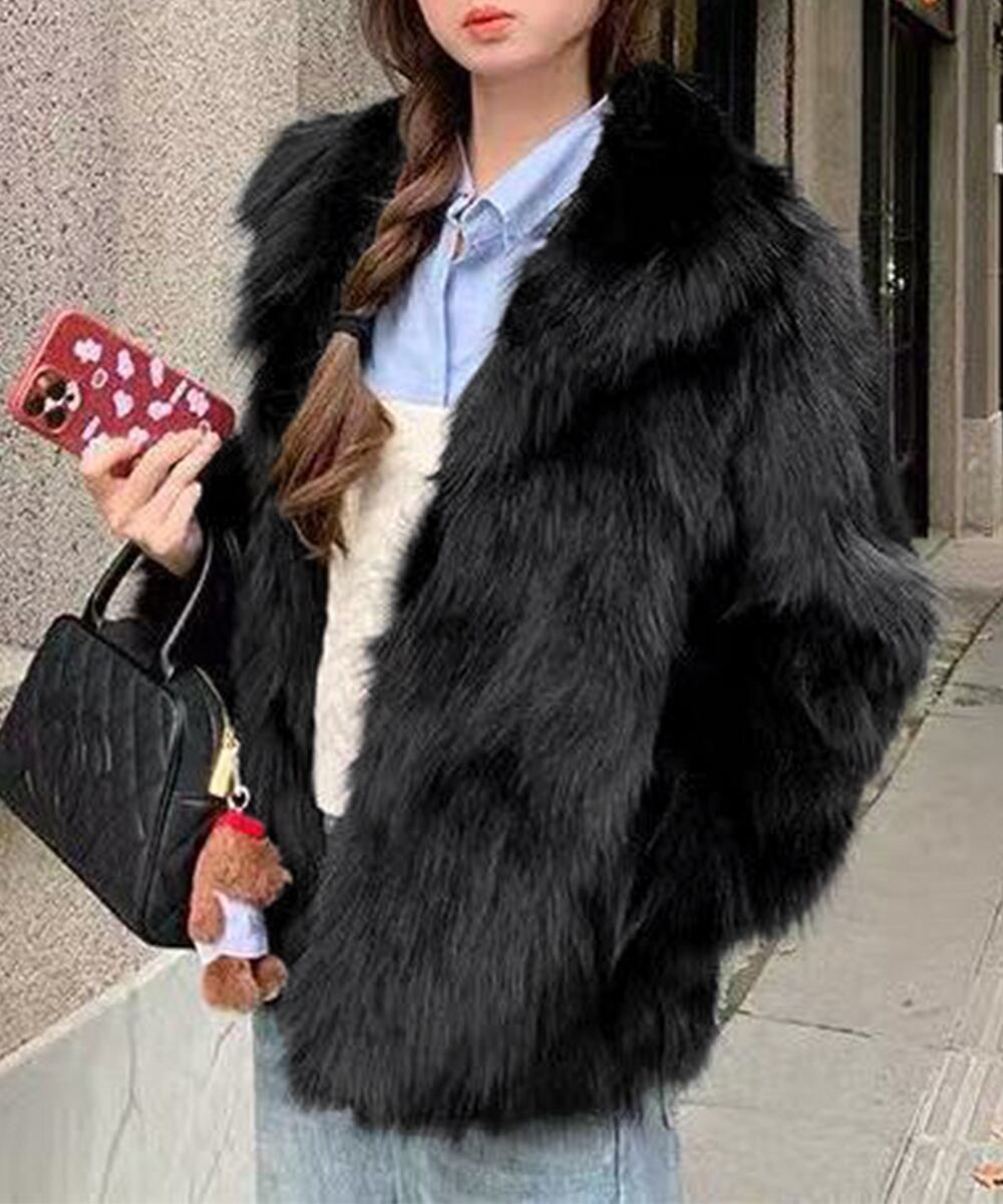 【日本倉庫即納】 ふわふわフェイクファージャケットビッグ襟