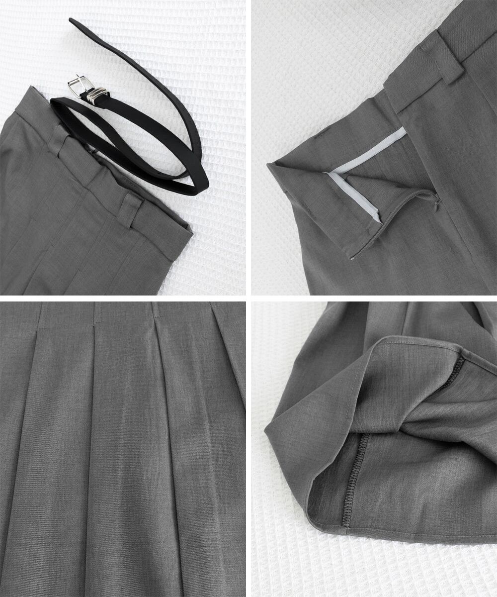 女性らしいシルエットを演出するベルト付きプリーツスカート。