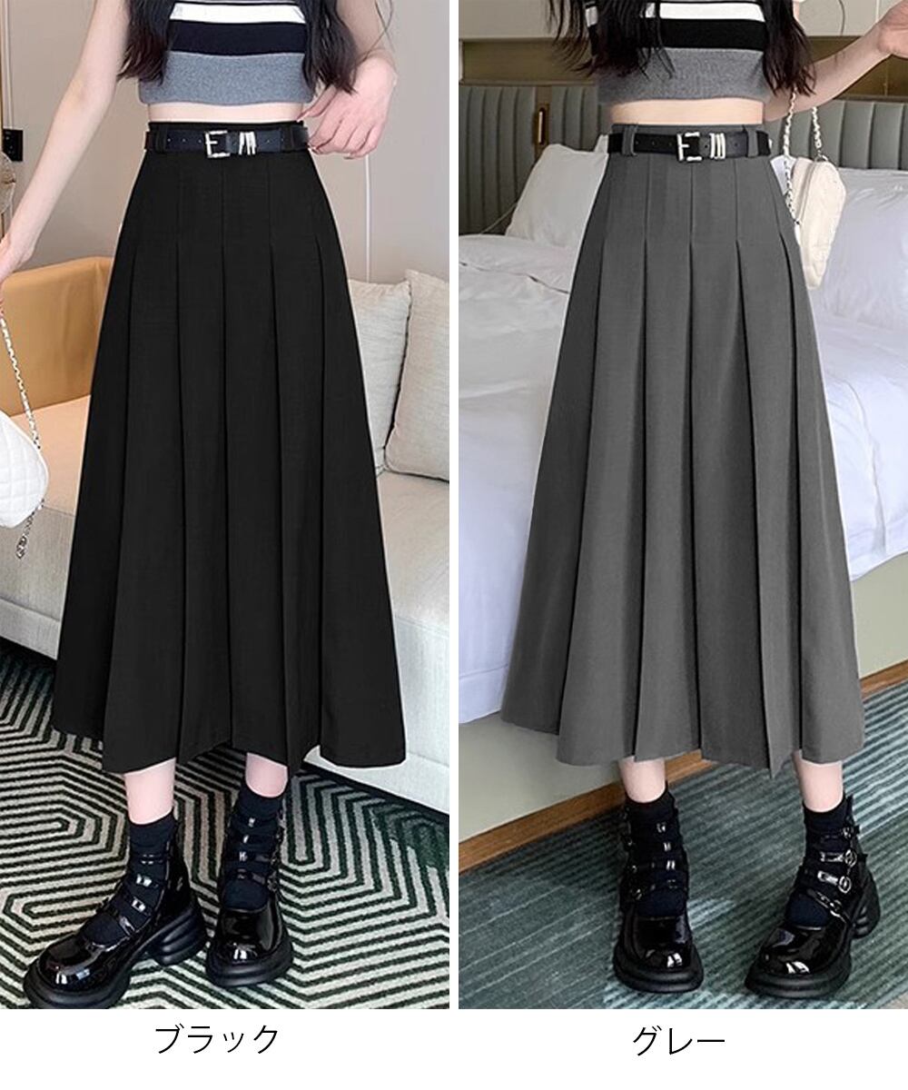 【日本倉庫即納】 プリーツスカート ベルト付き 韓国風